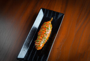 Taco Smashed Jackfruit Shami, Lal Mirch-Pepper Emulsion, Mint Chutney
