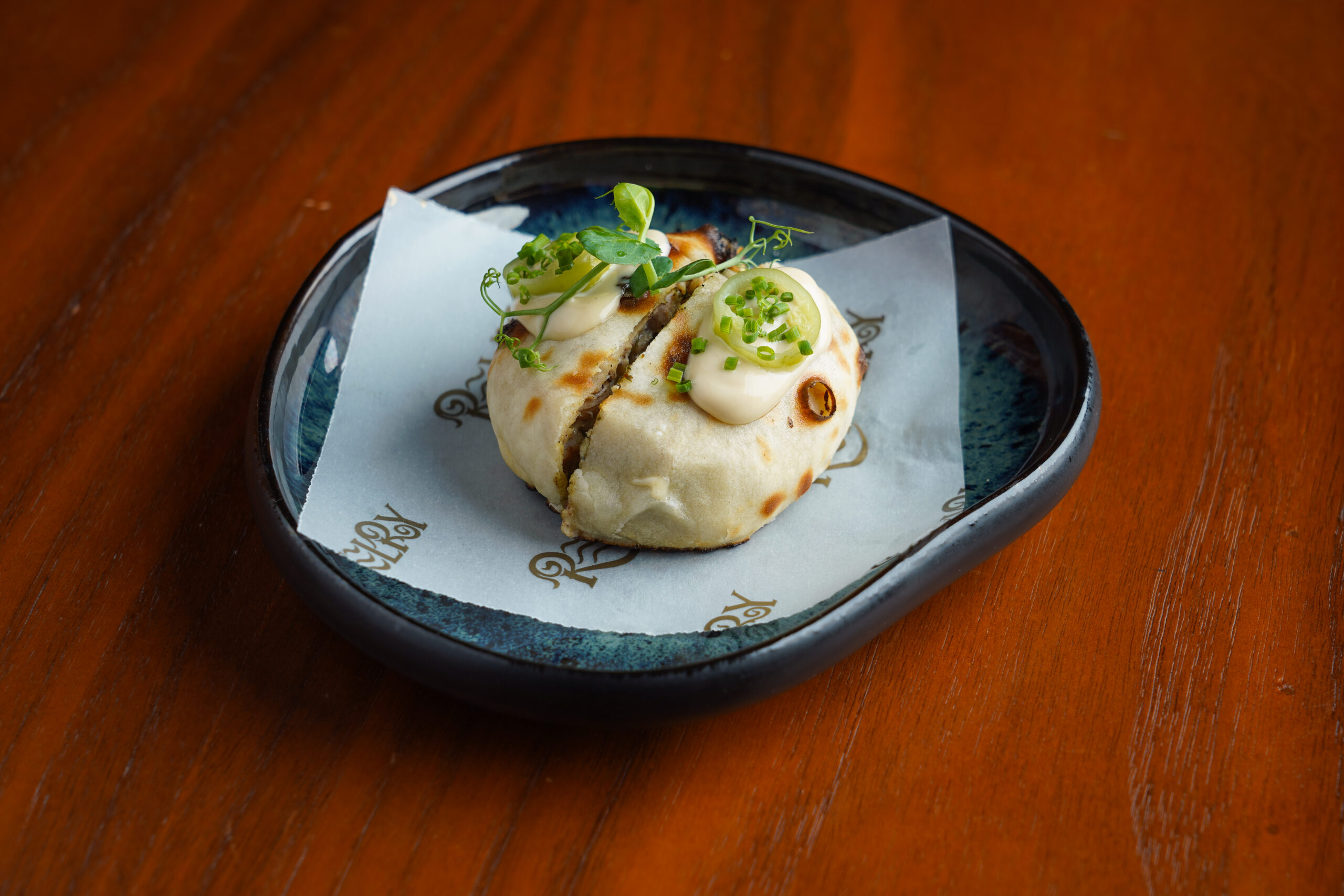 Shawarma Kulcha, Aioli, Pickled Bhavnagari Chili